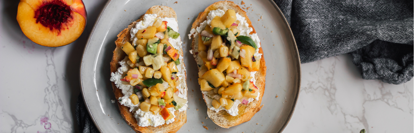 Our Avocado Peach Salsa Toast is a light and healthy way to start the day, and it makes a great mid-afternoon snack. Fresh peaches lay over a bed of creamy Lifeway Farmer Cheese mixed with buttery avocados. Spicy jalapeño, sweet corn, and sharp onion create a flavor combination that is absolutely divine.
