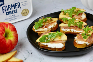 Apple and Farmer Cheese Crostini with Hot Honey made with Lifeway Farmer Cheese