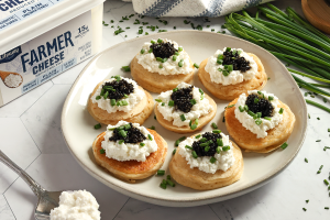 February 27, 2026 Farmer Cheese and Caviar Blini made with Lifeway Kefir and Farmer Cheese facebook twitter pinterest email Farmer Cheese and Caviar Blini made with Lifeway Kefir and Farmer Cheese