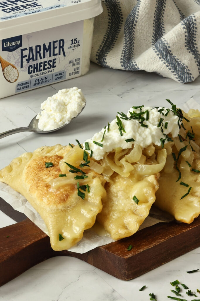 Our cultured farmer cheese boosts these pierogi with complete protein, all while being easy to digest due to the culturing process. To make the pierogi, you’ll need some simple ingredients found in most home kitchens and a container of some Lifeway Farmer Cheese. Find it in stores near you so you can enjoy every warm, comforting bite of these pierogi any time you please!