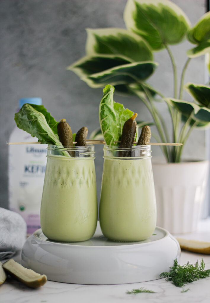 Have you ever had a pickle smoothie? It’s dill-icious. And we’ve got the best recipe around. Each nourishing sip of our Pickle Kefir Smoothie is tart and softly sweet with underlining notes of vibrant dill flavor. This unique, herbal masterpiece is made by blending Lifeway Kefir with fermented pickles and tro-pickle fruits mango and banana. Besides packing a probiotic punch to support your gut, the naturally tangy taste of Lifeway Kefir complements the other ingredients perfectly, creating a flawless smoothie treat.