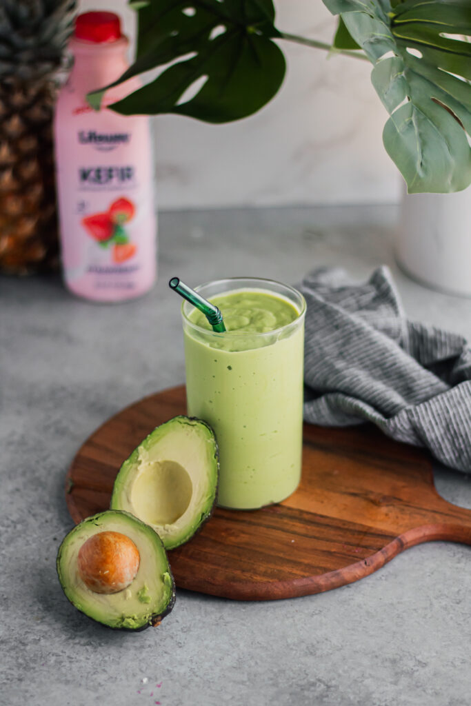 Our Skin Health Smoothie blends a medley of skin-focused ingredients to help you look as good as you feel. This recipe starts with our Strawberry Lifeway Kefir. Emerging research shows that taking care of your gut may benefit your skin and Lifeway Kefir is packed with gut-loving probiotics. Next, we blend pineapples in because they contain bromelain, which may soften skin and aid in the digestion of protein. Finally, we add collagen to reduce wrinkles and spinach for vitamin A, folate, potassium, and fiber.